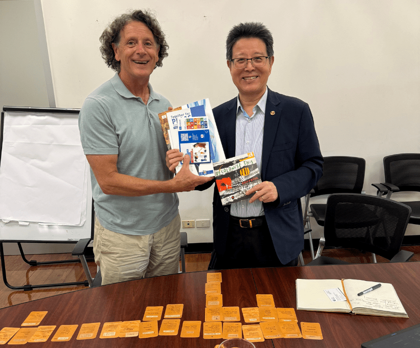The following day Ralph Met with Dr Feng Jing, Chief of Culture Unit, UNESCO Regional Office in Bangkok, Thailand, and Ms Montakarn Suvanatap Kittipaisalsilp, Project Officer, Culture Unit, UNESCO Regional Office in Bangkok. After outlining the Dialoguing the Arts Project, Ralph introduced the Decolonise This… game. Montakarn immediately said, “Oh Great I love card games.” After an hour and half, Montakarn finished the game saying, “I’m going to use this tomorrow as I develop funding applications for several or our UNESCO projects in 2026.” The picture below shows Ralph and Dr Feng Jing exchanging documents after paying the game.