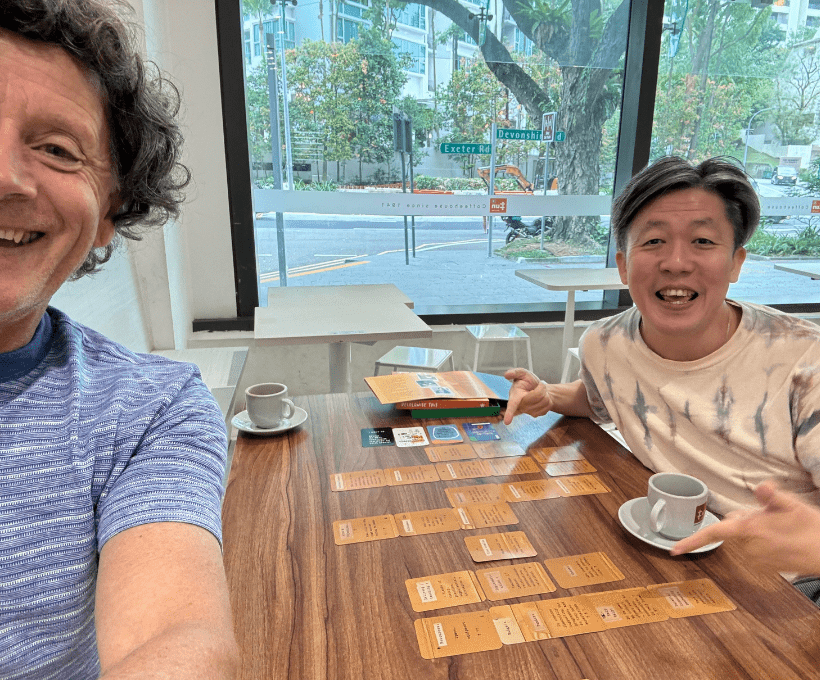 On 13 January 26, Ralph met with Prof. Chee Hoo Lum, Music Education, National Institute of Education, Singapore. Again, Ralph gave Prof. Lum an overview of the Horizon Europe project and then activated his understanding through the playing of the game. After 2 hours of ongoing dialogue, Prof. Lum commented, “I’m about to teach my master’s students this afternoon. This game is perfect for introducing them to values and issues that they need to consider as Arts Educators in Singapore.” The picture below shows Che Hoo Lum and Ralph after the game.